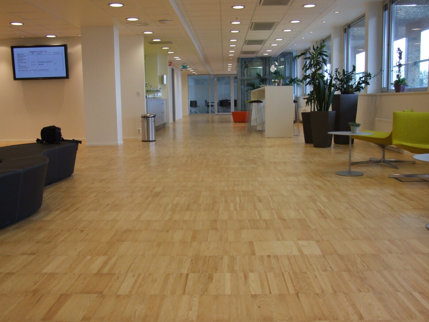 Her har vi Slipt og lakket 2200m² Høykant ask parkett