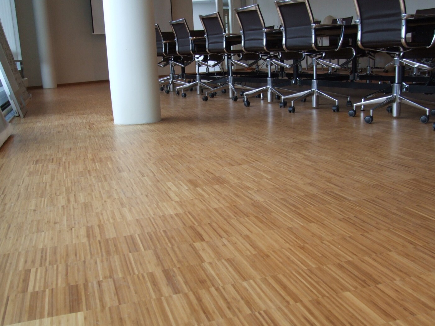 Her har vi slipt og lakket 1000m² høykant bambus.
